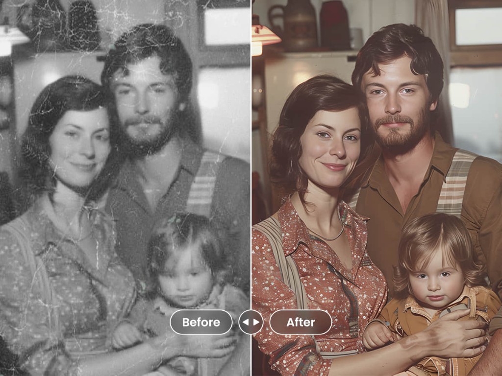 ReBloomAI provides old photo restoration, colorization, batch workflows, history management, HD downloads, and sharing in one workspace.
