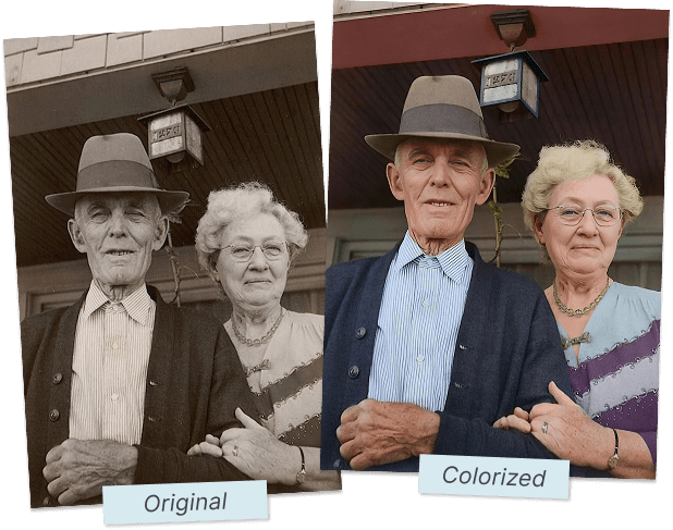 The carousel below uses your uploaded sample assets to showcase restore and colorization quality.